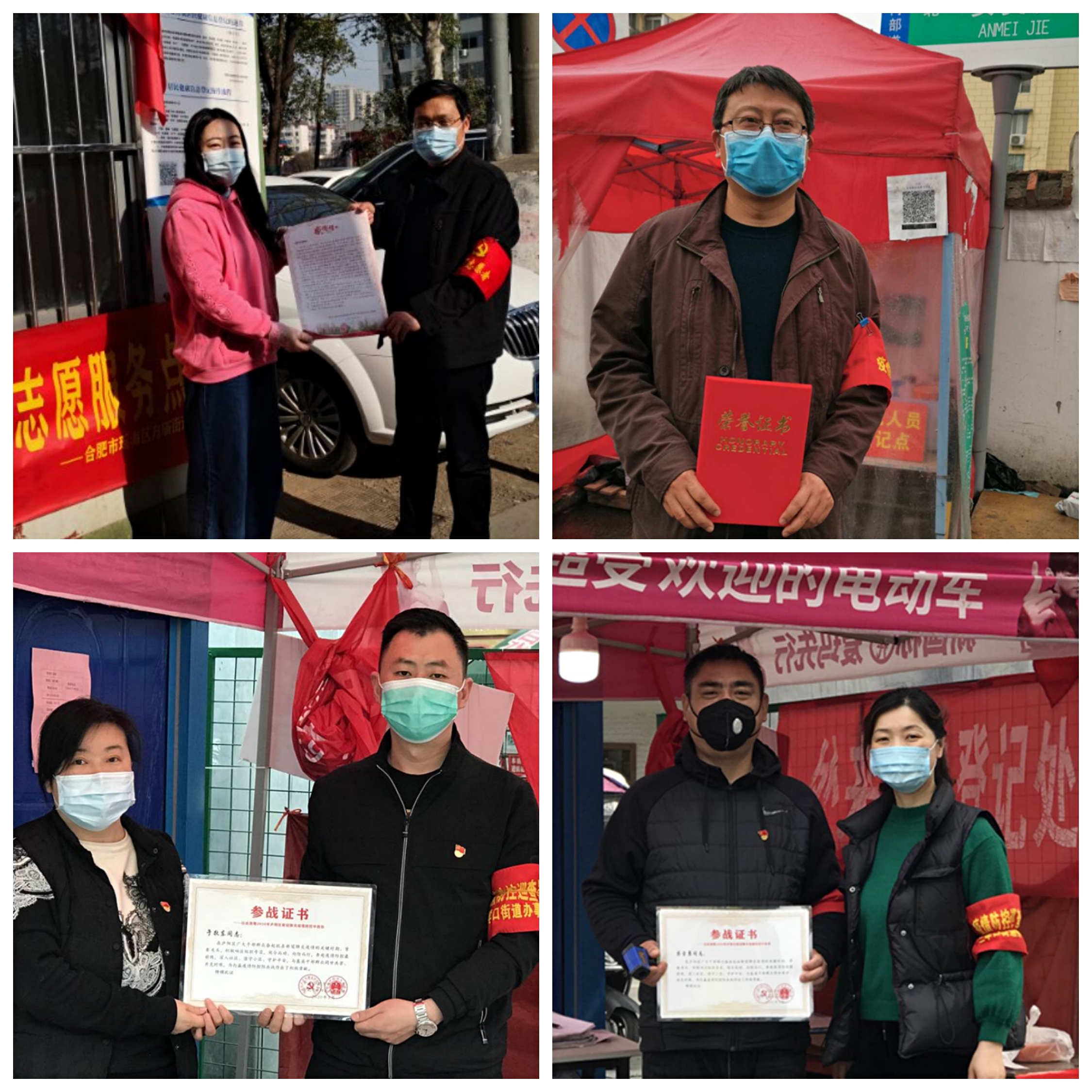 同志们克服困难,充分理解,自行解决就餐问题,在物资紧缺点自带酒精、口罩、手套,轮值到深夜也坚守岗位。执勤期间合肥多次遭遇寒潮,气温骤降,风雨交加,甚至社区志愿点的棚顶都被大风掀翻,可是他们坚守岗位,恪尽职守,毫无怨言。