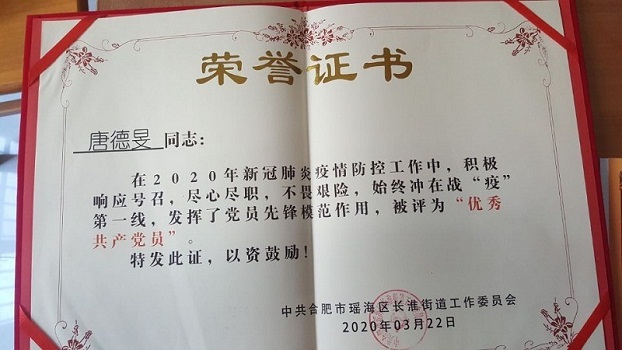 疫情就是命令,在2020年2月12日收到校党委文件之后,唐德旻同志作为一名具有近30年党龄的老党员,积极响应市委组织部的号召,报名参加了下沉社区相关的防控工作。