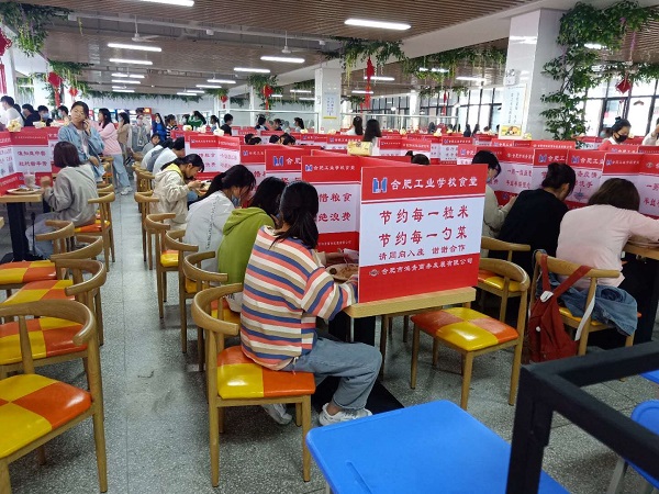 要求餐厅增加窗口数量,加大菜品供应,避免因学生的就餐高峰而发生拥挤聚集。学生分三个学部错时就餐,一楼经信部,二楼建工部,三楼服饰部,学生佩戴胸卡,严禁学生乱窜就餐。