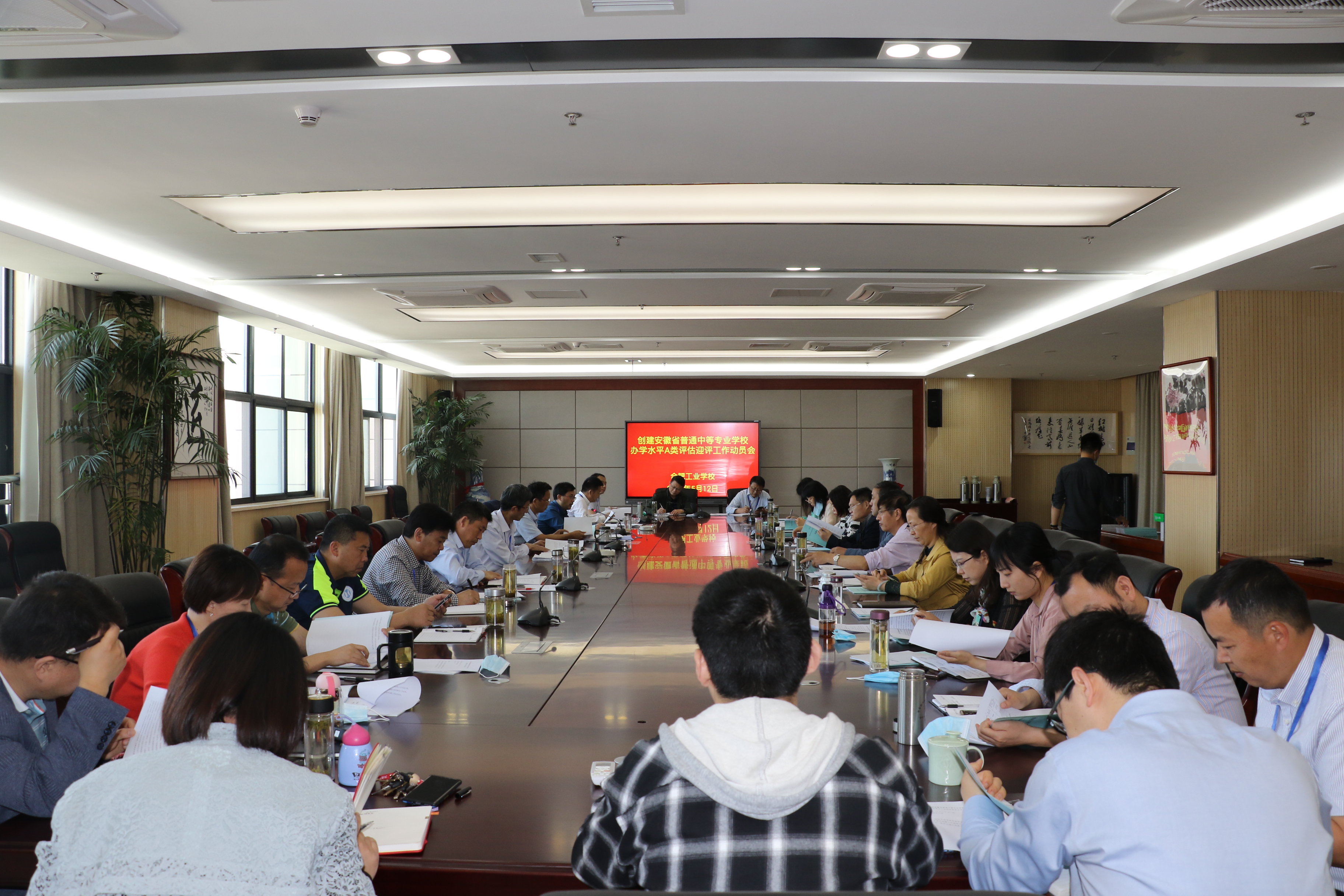 为切实做好创建安徽省普通中等专业学校办学水平A类评估各项工作,5月12日上午,我校在行政楼九楼会议室召开创建迎评工作动员会。创建工作领导组成员及全体中层以上干部参加会议,副校长曹文华主持会议。