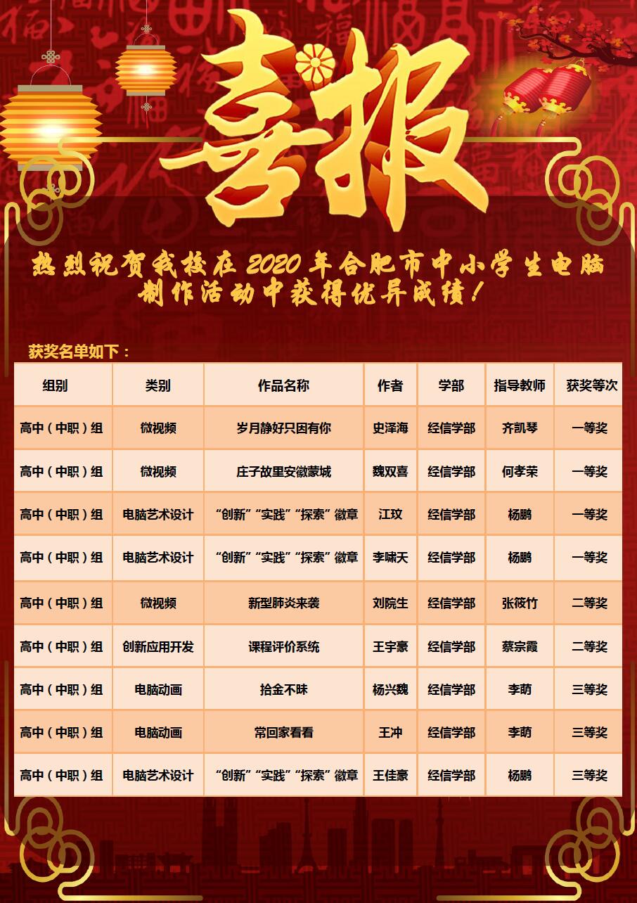 由于正值疫情期间,学生尚未返校,在学校实训处和学部的精心组织下,各位指导教师通过线上和电话进行指导。在极短的时间内,从全校上报的作品中遴选出11个作品,推荐参加2020年合肥市中小学电脑制作活动。参赛作品取得如此成绩,充分彰显我校专业风采,展示学生的创作能力。