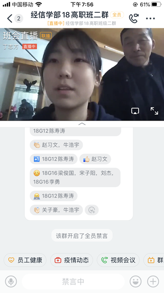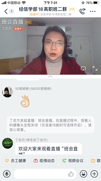 疫情期间,为有序推进我校开展家校共育活动,巩固家校共育机制,3月16日晚7点30分,由校学生处牵头,利用“钉钉”平台组织了一场超过万人收看的网络视频班会。此次班会课特意邀请了有时间的学生家长参与进来,力求打破家校沟通壁垒。本次班会由学生处副处长丁志方主持。