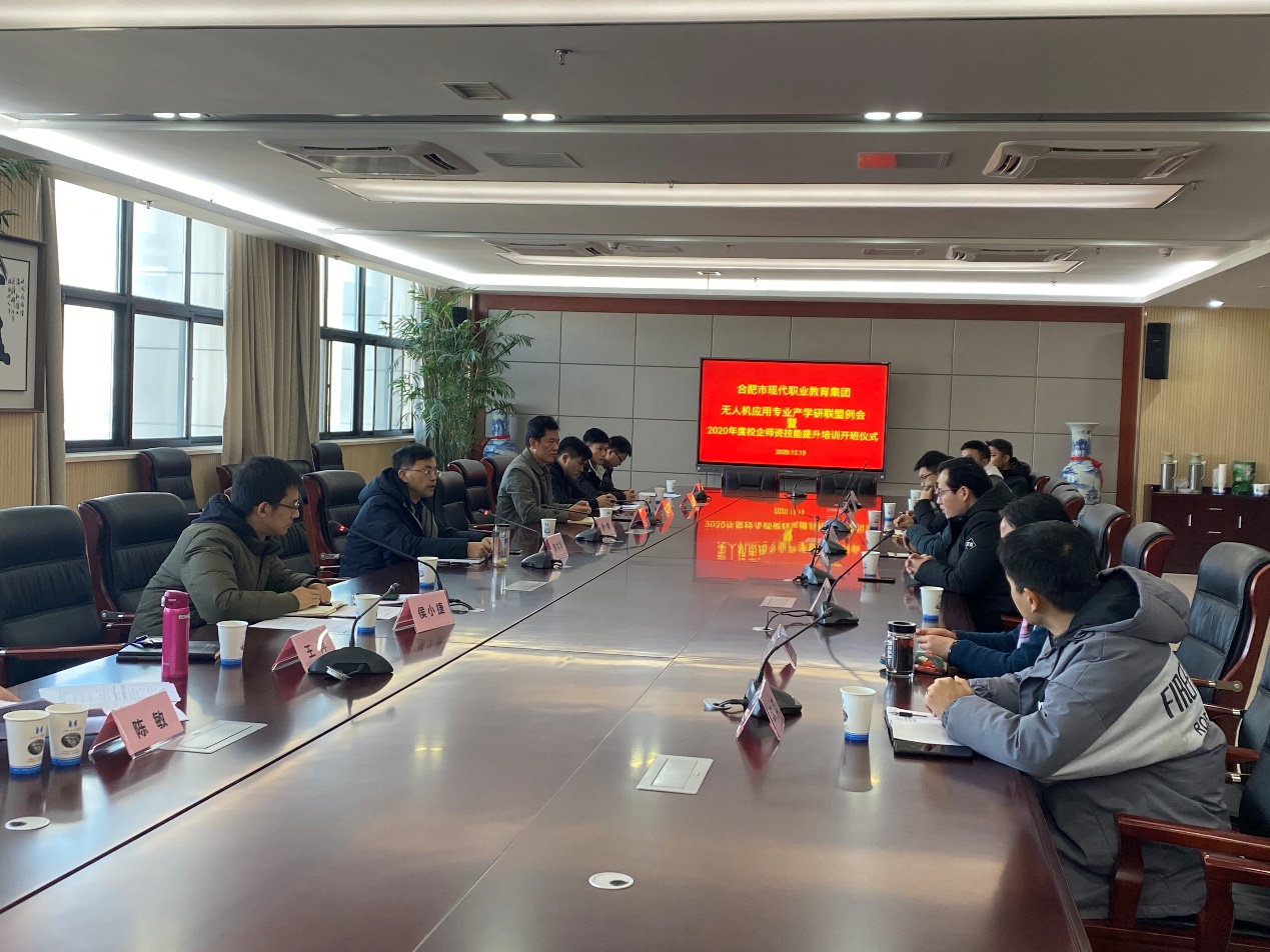 12月15日,合肥市现代职业教育集团无人机应用专业产学研联盟(以下简称联盟)第三次例会在我校召开。此次例会议程包含技能提升培训班开班、2021年市赛赛程审议等。副校长曹文华,无人机应用专业产学研联盟负责人、副校长孙健等联盟主要成员,以及联盟成员单位的10名学员出席本次会议。