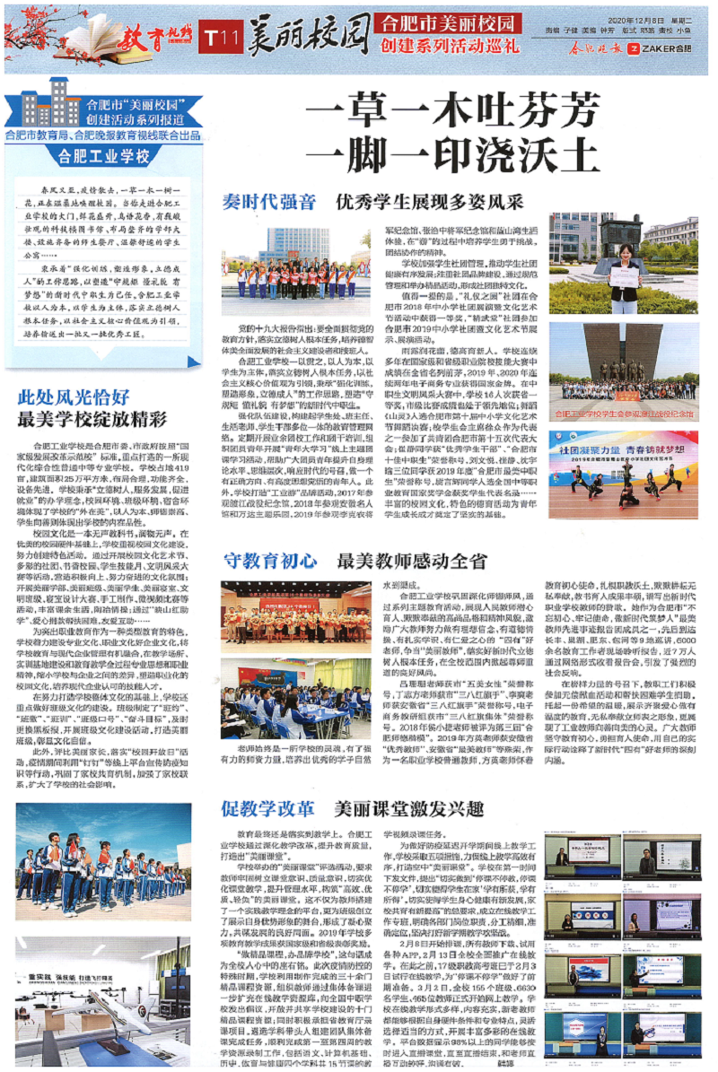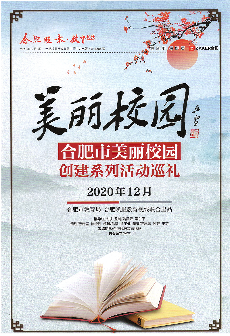 2020年12月8日,合肥市教育局与《合肥晚报▪教育视线》联合出品的《美丽校园》系列活动巡礼专题展,用T11整版篇幅详实全面地宣传了我校美丽校园创建成果。