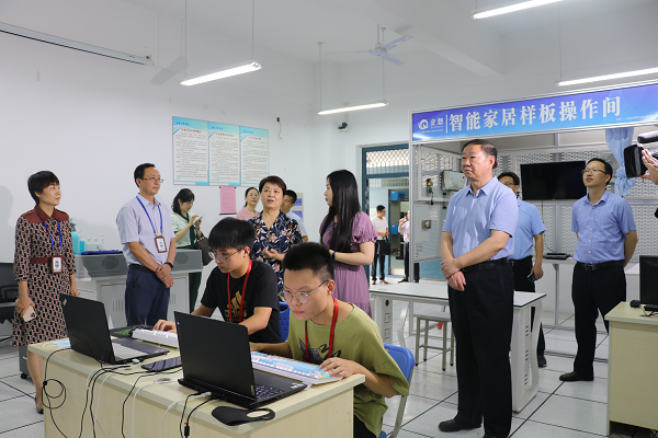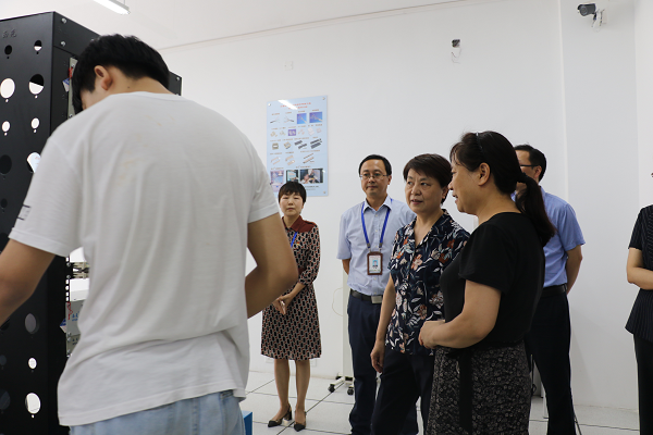 王翠凤一行深入课堂,依次考察了智能家居、网络布线、激光雕刻、无人机应用、物联网等实训室开展调研。在智能家居实训室,王翠凤详细询问了智能家居代码编写和采集控制模块化相关问题。