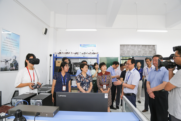 在无人机和激光雕刻工作室,王翠凤与师生亲切交流,认真听取汇报,对专业课程设计、校企合作、技能培养模式和学生就业等工作提出具体要求。