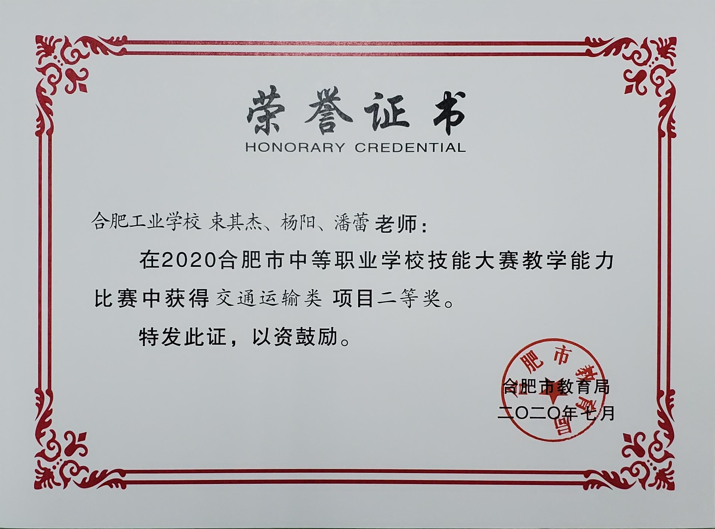 幸福都是奋斗出来的,奋斗本身就是一种幸福。在刘文老师的指引下,潘蕾老师积极参加各项比赛,于2019年获得合肥工业学校蓝青工程优秀青方教师、蓝青工程征文比赛三等奖。并于2018年-2020年连续两年参加教师技能大赛,2019年获安徽省中等职业学校技能大赛教学能力比赛三等奖,2020年获安徽省中等职业学校技能大赛教学能力比赛二等奖。