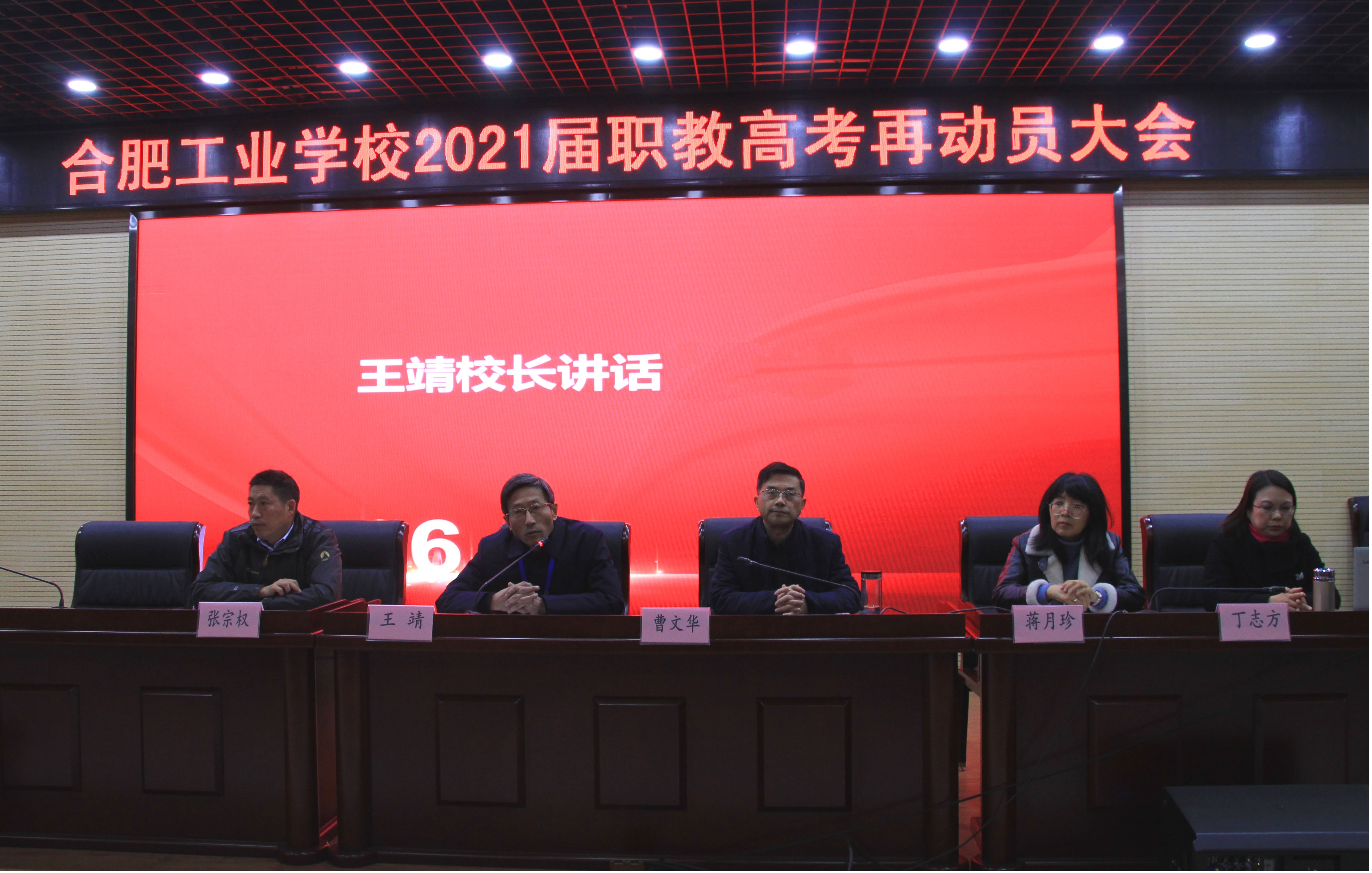 为进一步增强18级职教高考班学子们的学习动力,激发学生的学习热情,营造复习备考的学习氛围,12月18日下午,2021届职教高考再动员大会在图书馆四楼会议室隆重召开。校党委书记、校长王靖,副校长曹文华、张宗权及教务处、学生处、教研室、各学部负责人出席动员会。18级职教高考班全体师生参加了会议。动员会由18级职教高考年级组组长赵俊老师主持。
