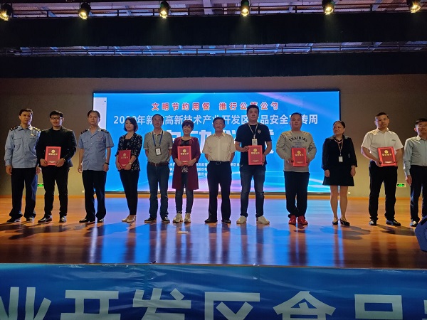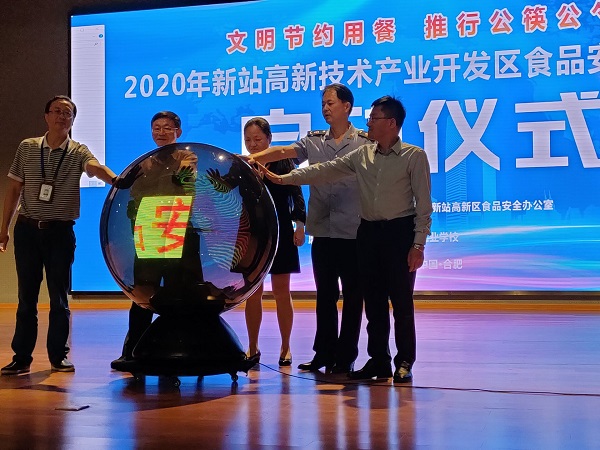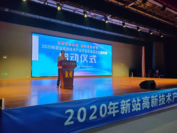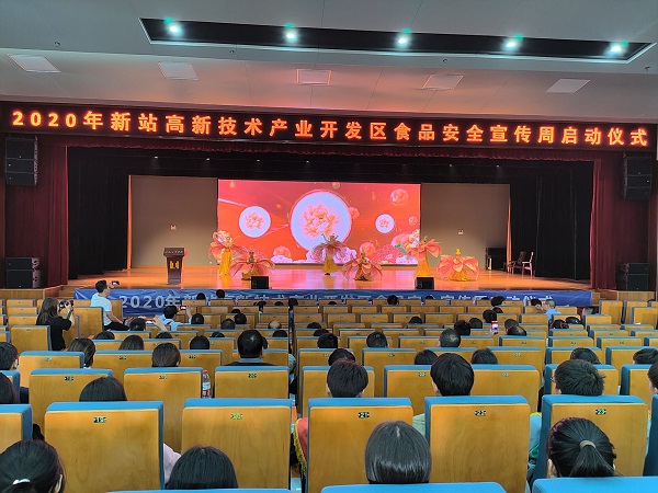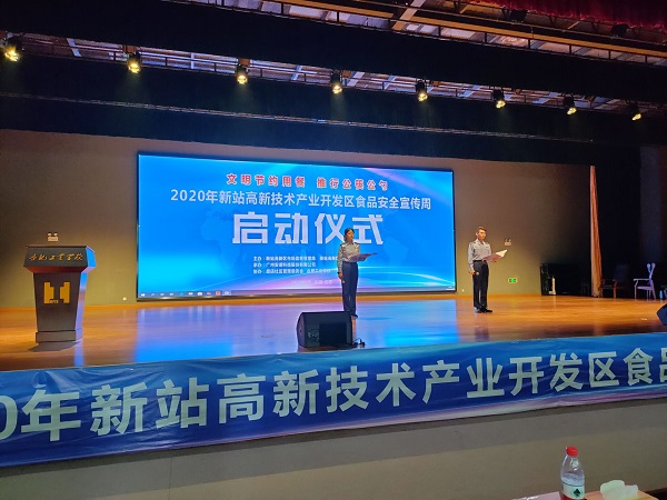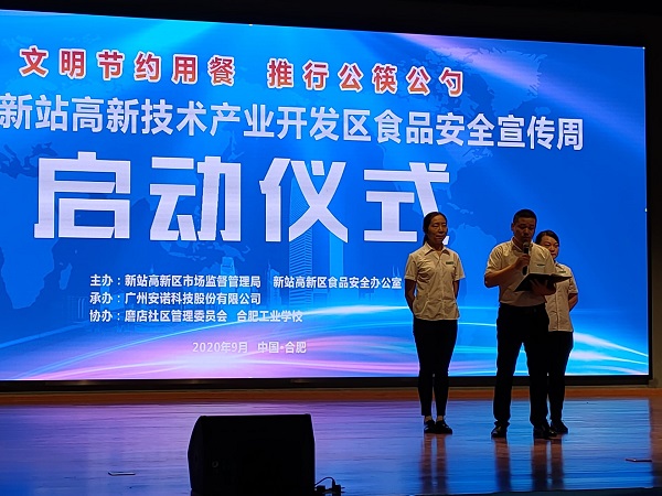 9月23日上午9点,“新站高新区2020年食品安全宣传周启动仪式”在我校科技楼三楼大礼堂隆重开幕,参会的人员有新站区食品安全委员会副主任、管委会副主任高同国,合肥工业学校副校长孙健,市场监管局副局长顾红军,社会事业局分管副局长蔡建春,磨店社区副主任王维法以及市场监管局、各社区、安诺快检、A级餐饮单位、合肥工业学校学生等代表人员。