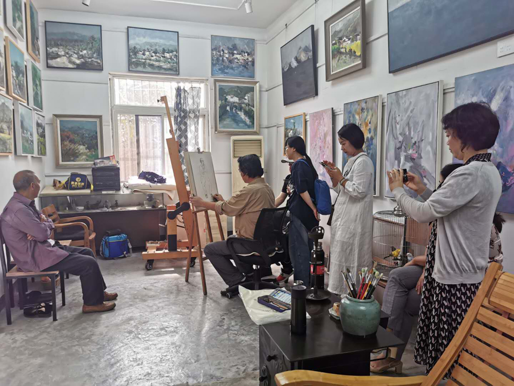随后成员在艺术家方军的带领下参观了村里多个知名艺术家工作室,用眼睛感受艺术的魅力,用心聆听艺术的感召。