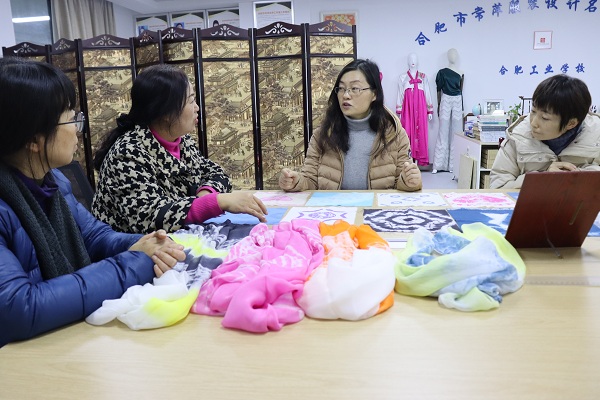 11月26日下午1点半,常萍(教育)名师工作室在科技楼604开展了一场别开生面的学术与艺术交流活动,安徽职业技术学院教授陈秀芳给工作室成员主讲了扎染创新技法,并从扎染创新技法延伸到了与数码印花的融合,内容生动,案例形象。