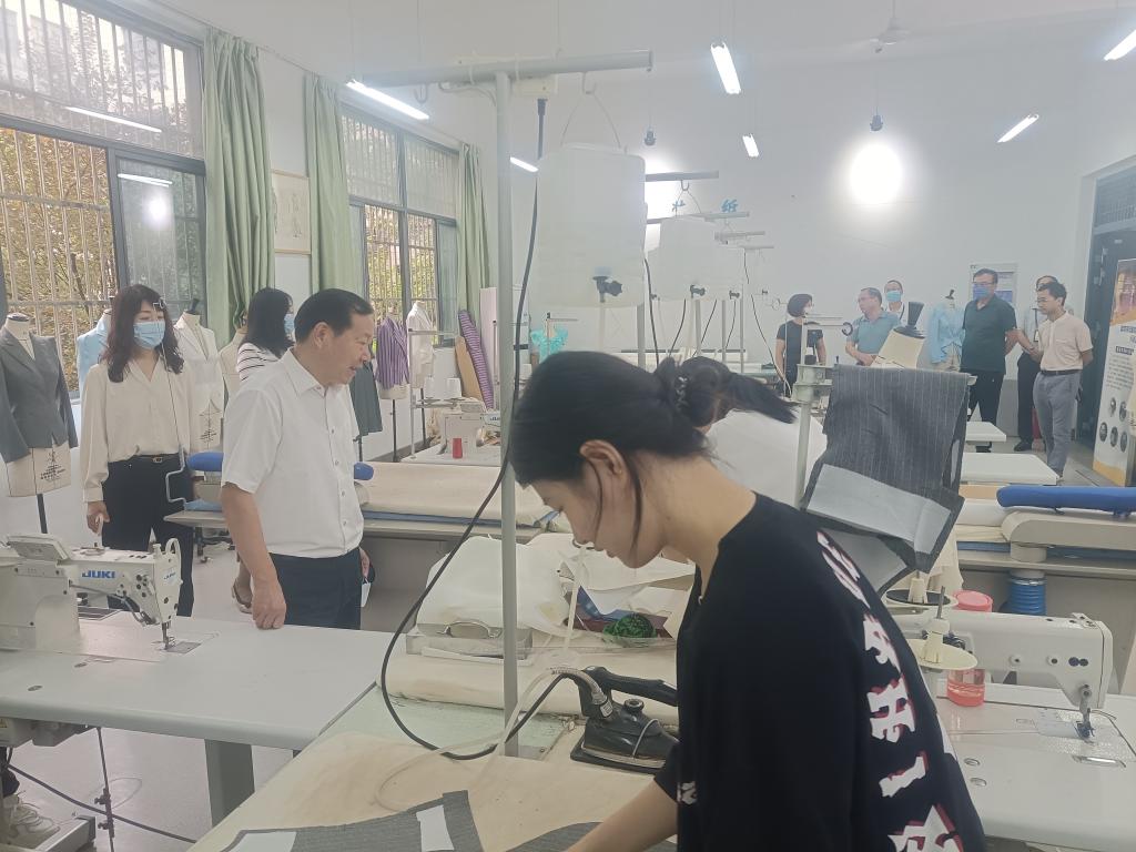 考察团一行首先参观了学校服饰与文化艺术学部服装智能定制产学研基地和服装生产车间智能一体化实训室,深入了解服装专业校企合作、产教融合、教育教学、竞赛升学等情况。