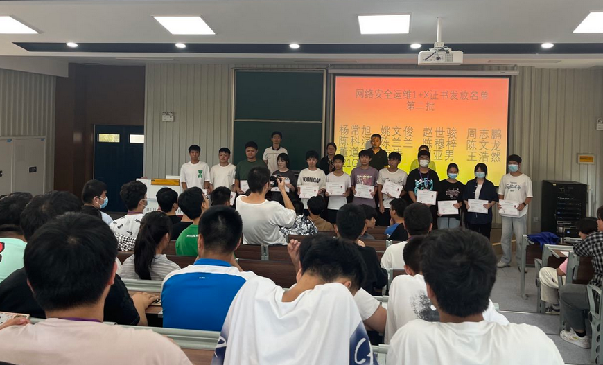 最后,学部为学生们颁发“1+X”网络安全运维证书和国家信息安全水平证书,祝愿他们今后在专业领域能不断进取,在社会网络安全领域发光发热。
