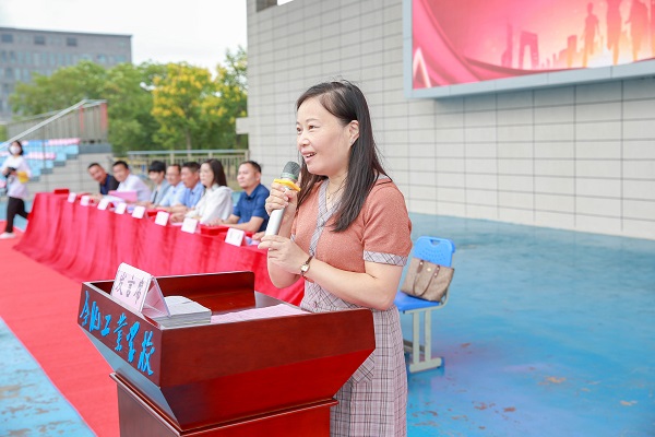 教师代表时华在发言中倡议同学们在新的人生起跑线前确立奋斗目标、端正学习态度、遵规守纪、刻苦学习,用拼搏书写一支奋斗的战歌,用热情投入谱写出一曲昂扬的旋律。