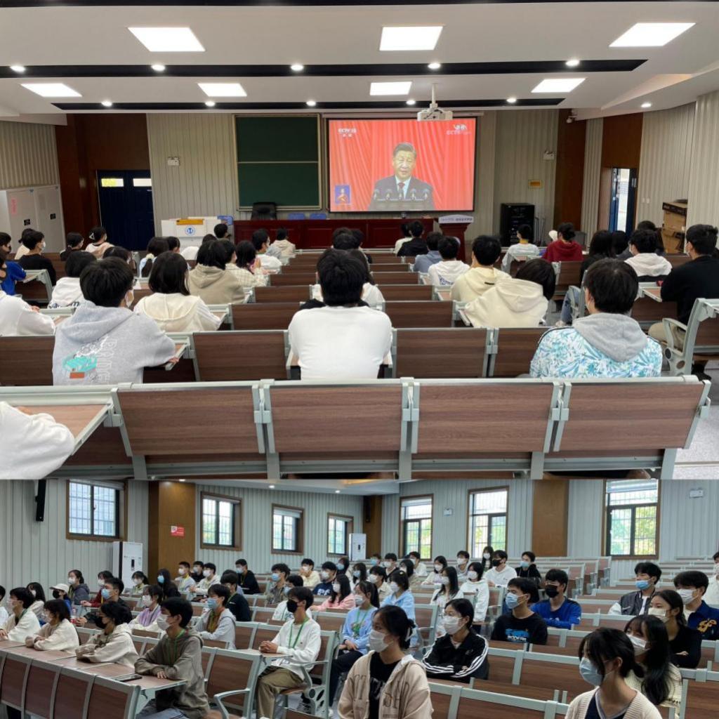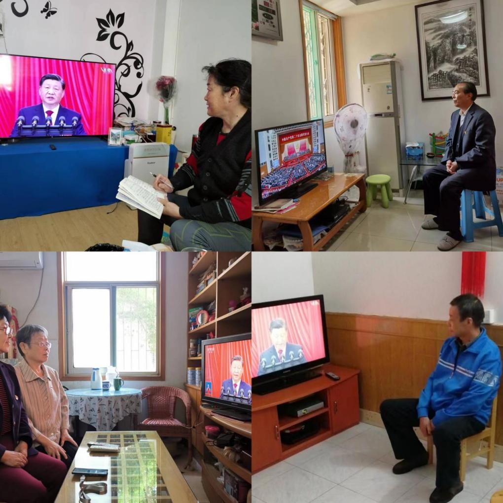 各在职党支部全体党员和学生团员代表在学校各会场集中收看开幕会,离退休党支部党员、走读生和住校生分别在家和宿舍收看。