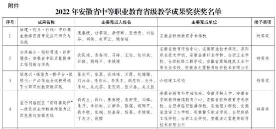 11月1日,安徽省中等职业教育省级教学成果奖获奖揭晓,我校高级讲师、电子商务教研组组长方英老师所率领的研究团队申报的成果——《多元共促 三化互融 四强协同——中职电子商务专业人才培养模式改革与实践》荣获省级教学成果奖一等奖,并被推荐国家级教学成果奖评选。