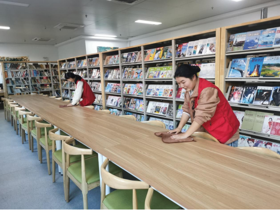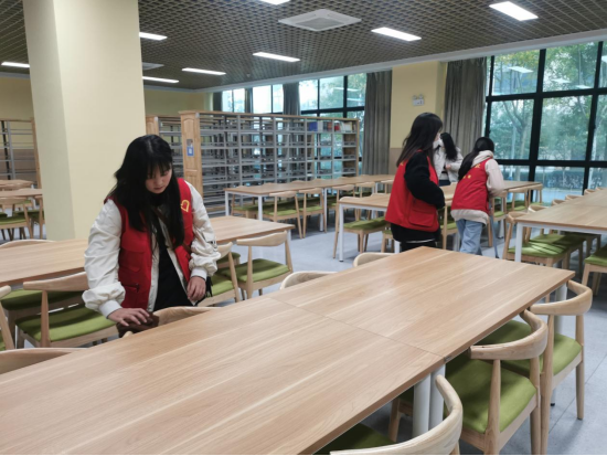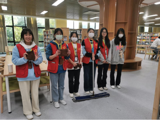 图书馆馆长张永慧老师把同学们分成了四组,分别打扫一楼中央书库和吧台、一楼社科书库和自然科学书库、红色书房、二楼阅览室。同学们擦窗户、擦桌子、拖地,干得热火朝天,忙得不亦乐乎。经过半个小时的打扫,图书馆焕然一新,同学们也体会到劳动带来的快乐和成就感。