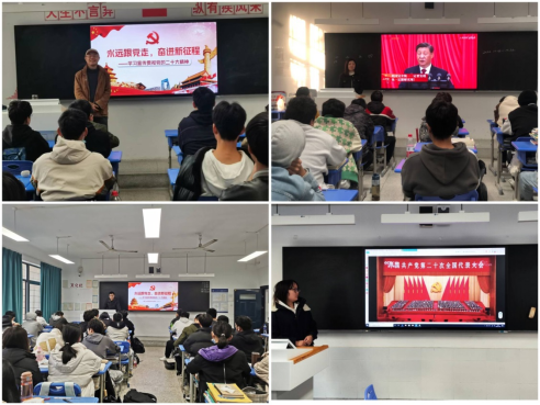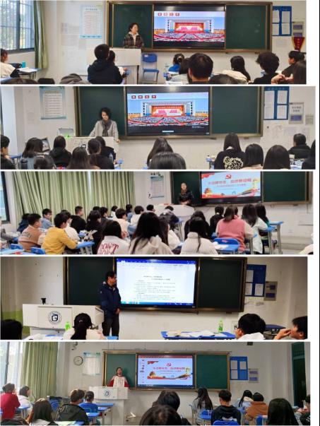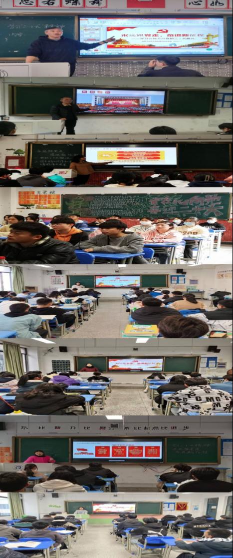 经过集体备课、完成课件和教案的准备,把党的二十大报告中新理念、新提法、新论断全方位融入到思政课的课堂教学中,用一组组数据回顾过去五年的工作和新时代十年的伟大变革,引发思考为什么能取得新时代的伟大成就?学习新时代新征程中国共产党的使命任务、深刻理解中国式现代化。让党的最新理论创新成果“带着热气”进教案、进课堂、进学生头脑。各学部思政教师面向所有年级的每一位学生进行宣讲:充分利用党的二十大会议精神的资源,以高度的政治站位,准确的理解把握青少年的心理,用通俗易懂的语言和喜闻乐见的方式方法,讲述学生关心关切的问题;把国家大事用最浅显的语言,说给学生听,让学生了解国家发展。最后,联系实际谈,学习二十大精神,职校生大有作为,每位同学要听党话、感党恩,跟党走,用专注、精致、用心和极致的精神去学好技能、读好专业,努力学习,用实际行动让自己成为专业领域拥有匠心匠魂之人!努力成长为担当民族复兴重任的时代新人!