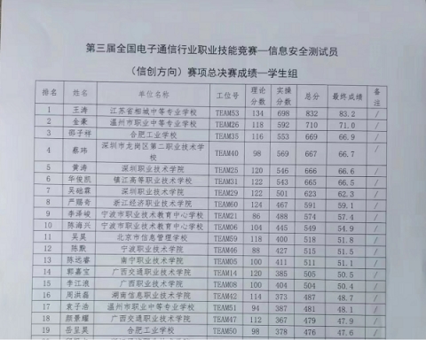 其中,第三届全国电子通信行业职业技能竞赛——信息安全测试员(信创方向)赛项全国总决赛在深圳举办,我校两人获奖。邵子祥(班主任:张杨)一等奖,岳呈昊(班主任:童亚运)三等奖。