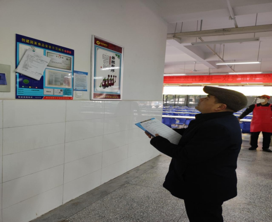 为做好本次检查工作,校食堂监督委员会结合市监管局、市卫健委对食堂食品健康安全监管相关要求,制订详细的健康安全卫生检查表。校检查组的教师代表们对教工食堂、学生食堂从经营许可证及从业人员健康证明是否上墙公示进行认真核实开始;依次对食堂环境的内外卫生、员工仪容仪表是否规范、原材料采购储存是否严格要求索证索票并建立原料进货、验收、领用台账;粗加工及切配、清洗消毒加工、食品留样是否符合要求;超市(商品价格、质量);水、电、通风排烟等多处地方是否规范操作、是否存在安全隐患等进行重点检查。