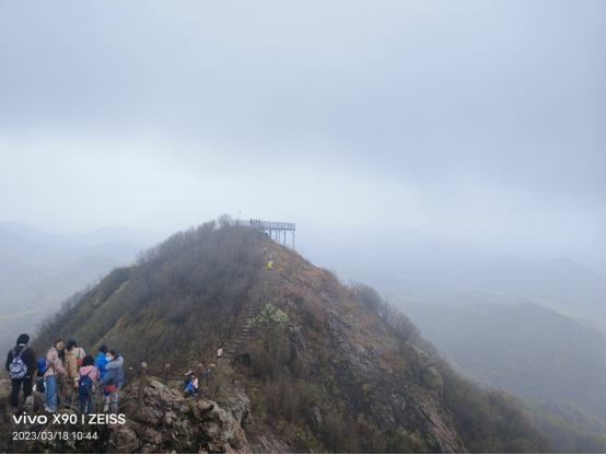 早上9点左右,3辆大巴车载着女教师们就到达了第一个目的地——庐江黄山寨。黄山寨海拔406米,山峰突兀劲拔,壁立千仞。石头天然形成,造型各异,如马昂首、猪前突、猴眺海、龟倒爬、石笋林立,石花绽放……春天的黄山寨更是美丽,白色的、红色的、黄色的,还有望不到边的绿,都溢满你的双眼,空气格外芬芳,沁人心脾,让人进入童话般的世界。奇峰峻岭的黄山寨窄处像浮出水面的“鲫鱼背”,高处像莲花绽放的“莲花峰”,奇处像一镰新月悬挂在陡峭山崖上的“老鹰洞”,还有数不清的大小山头:黑山、仙台山、扇面山等,高高低低的岭:西岭、马茅岭、蜈蚣岭等……