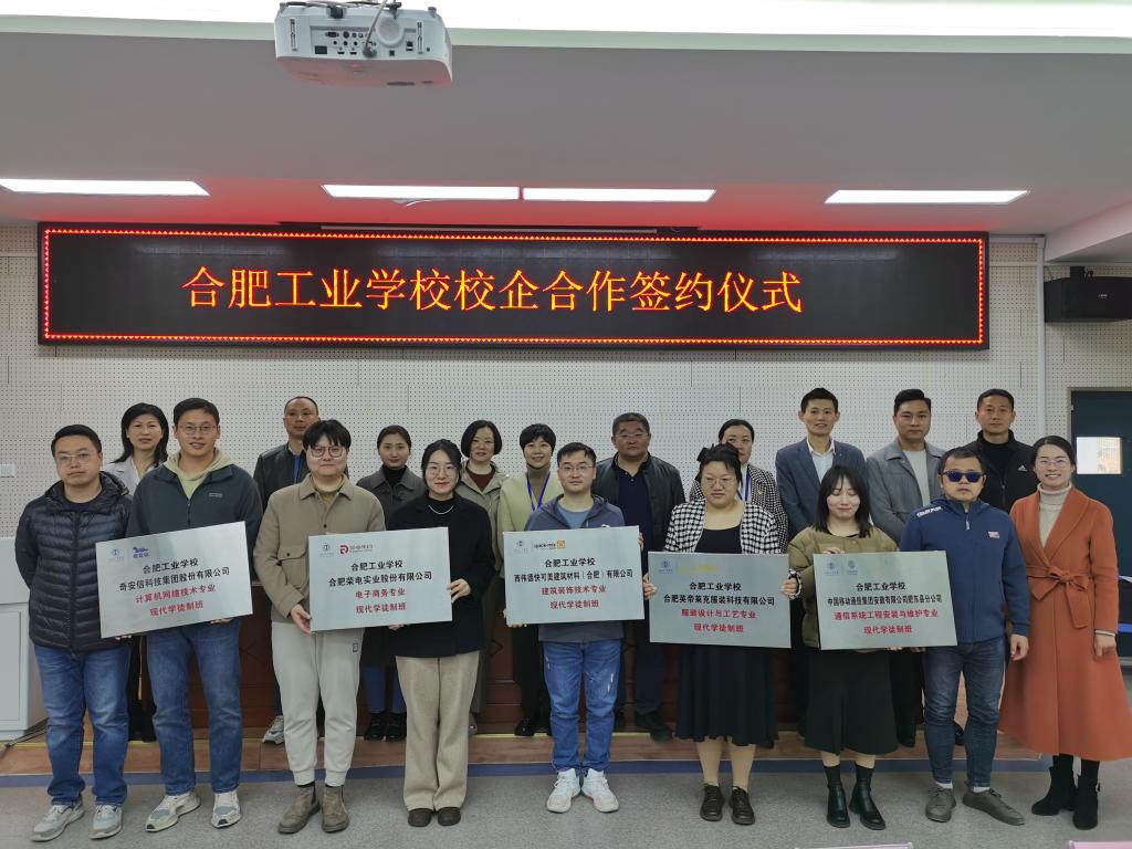 为贯彻落实《国务院关于加快发展现代职业教育的决定》和《教育部关于开展现代学徒制试点工作的意见》精神,加强校企合作,推进产教融合,近日,合肥工业学校在建筑与市政工程学部一楼阶梯教室举行现代学徒制班级挂牌仪式。西伟德宝业快可美建筑材料(合肥)有限公司、中国移动通信集团安徽有限公司肥东县分公司、奇安信科技集团股份有限公司、合肥荣电实业股份有限公司、安徽润华管理咨询有限公司等合作企业代表,现代学徒制班级师生参加了本次仪式,校党委委员、副校长董云霞出席本次活动。