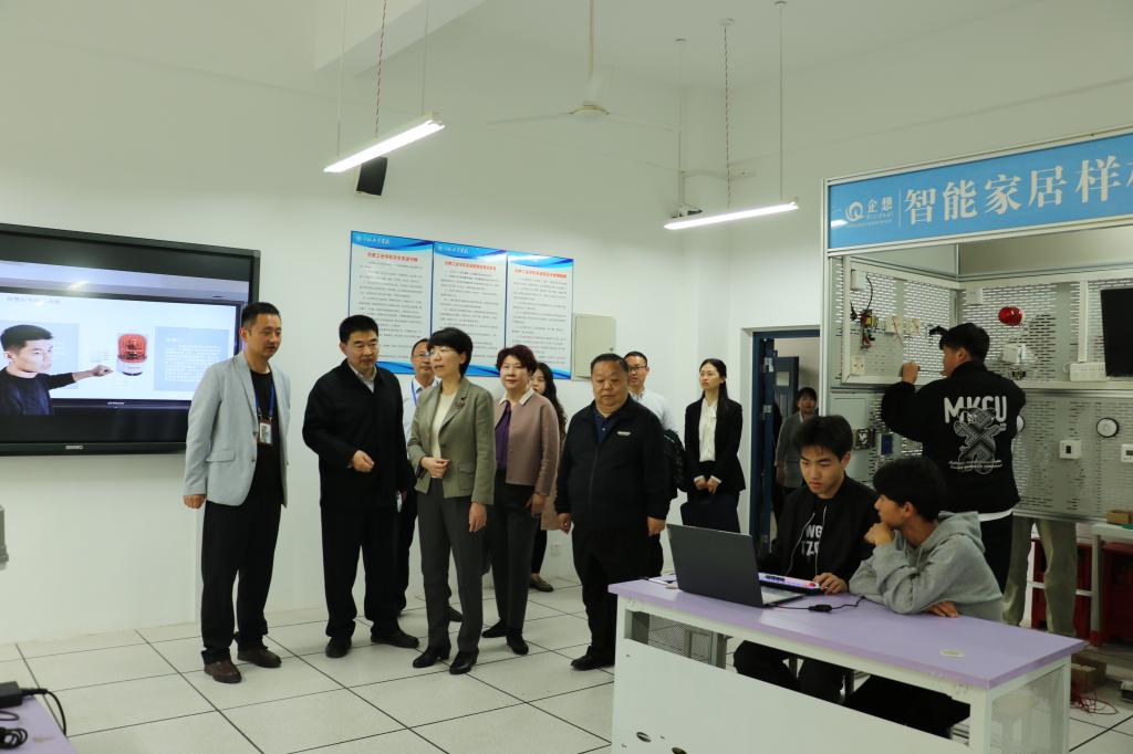 调研组一行深入到我校实训教室进行实地考察,在信息学部,实地察看无人机、智能家居等专业实训室,对设备一流、科学规范的实训室建设给予高度肯定。