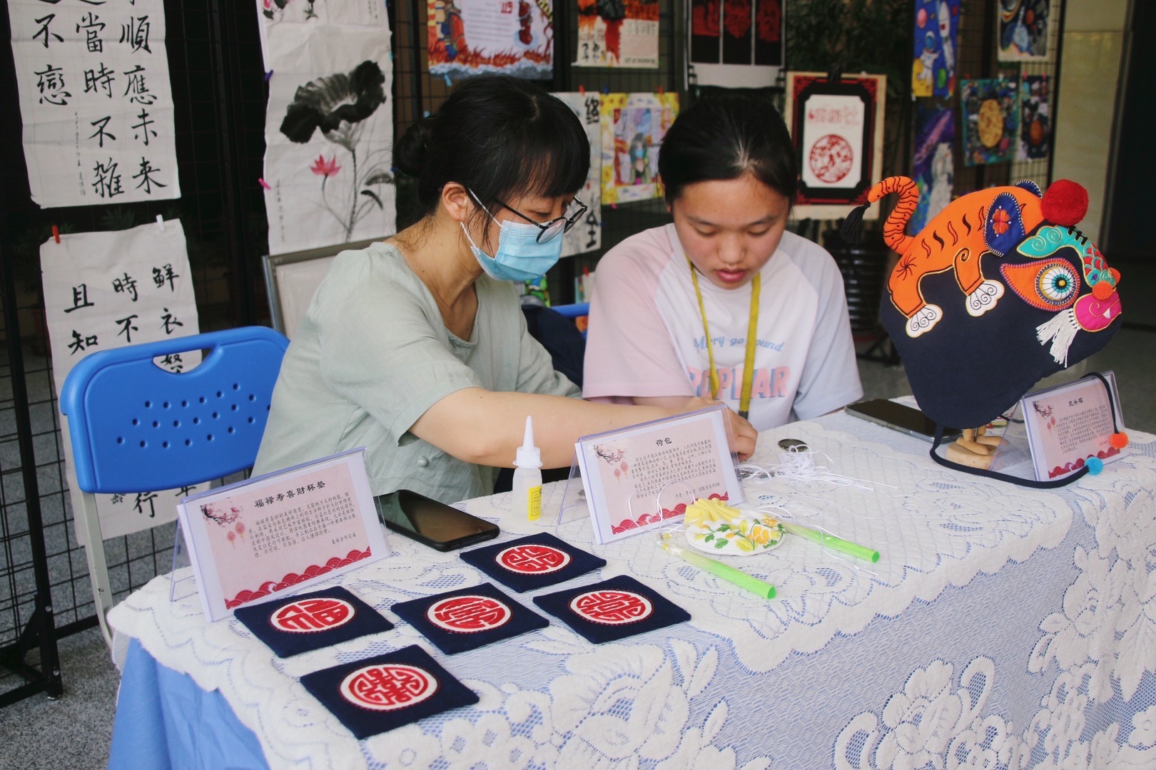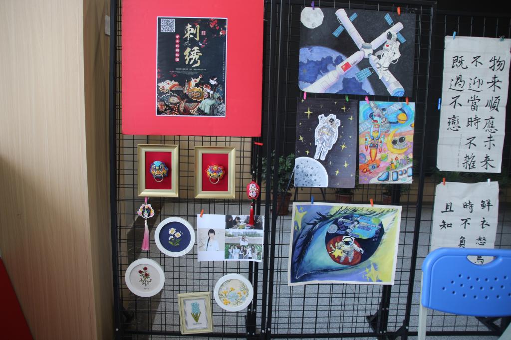 6月9日正好也是学校的“家长进校园”活动日,各个社团的同学在指导老师的带领下,将他们的优秀作品展示在学部一楼门厅,使进入学部的师生和家长们都能看到他们的劳动成果,让家长们更加了解学生们的学习和生活,也让更多的人欣赏到艺术的美。