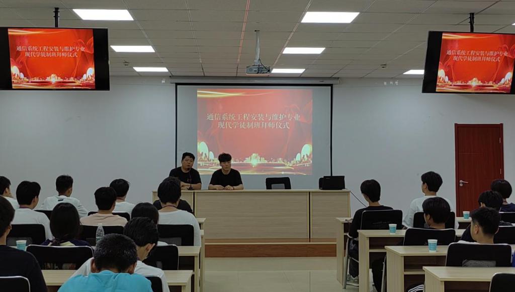 随后,校企双方举行实习实训基地授牌仪式与拜师仪式。企业讲师表达对学生的期许,表示将努力创造更多机会促进校企合作,对学生展开针对性培训与指导,提高学生认知与能力。