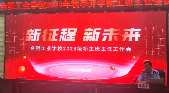 2023年8月25日下午,合肥工业学校在科技楼四楼会议室举行合肥工业学校2023年秋季开学全体班主任暨新生班主任会议,就开学工作进行动员和培训,确保新学期各项工作顺利开展。会议由学生处处长杨晓宁主持,党委委员、副校长张宗权到会并发言,法制副校长张东安受邀出席。