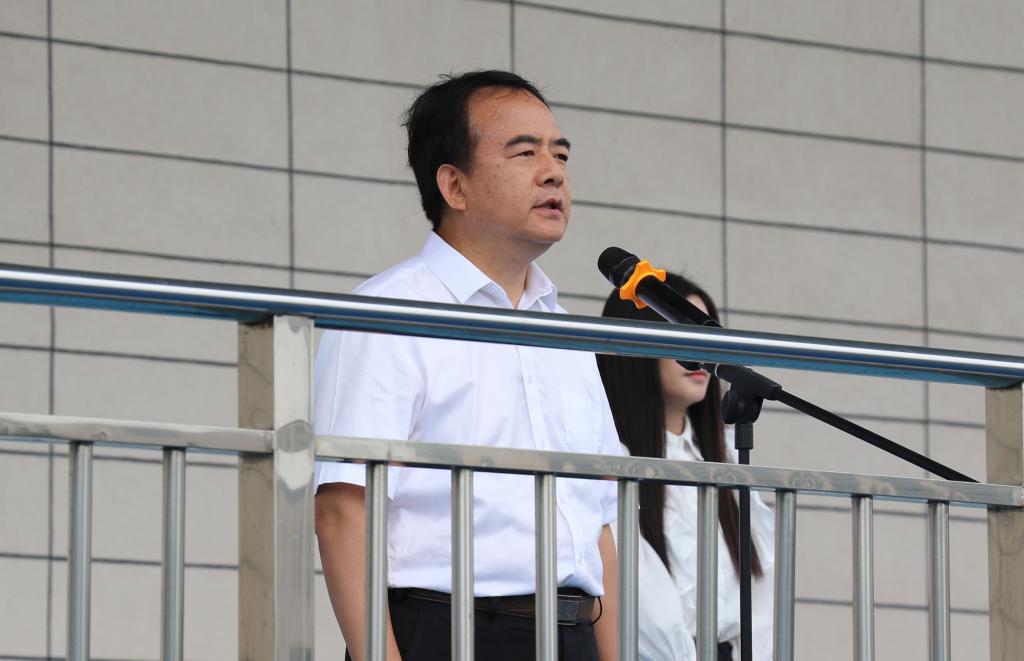 8月29日上午,我校2023级新生军训团开营仪式在学校田径场举行。校党委书记杨三龙,党委副书记、校长孙健,校党委委员、副校长张宗权、谢丹,各学部学管主任、学管老师,2023级班主任、军训教官及全体新生参加了开营仪式,仪式由张宗权副校长主持。