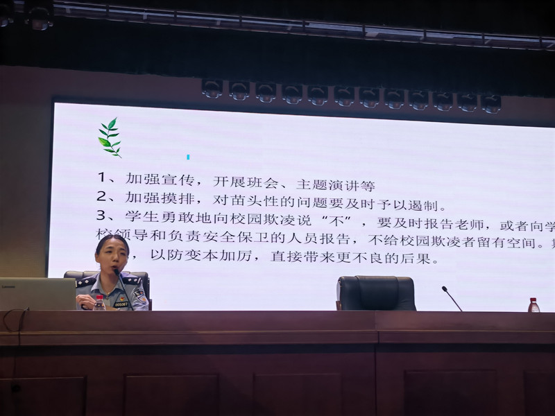 讲座中,陈警官结合学生的年龄特点,心理成长问题,从法律知识层面对“什么是电信诈骗”“如何防范电信诈骗”“校园欺凌、校园暴力的危害”“如何预防消防安全”等多方面进行了详细阐述。