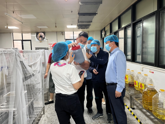 督导组深入检查了食堂环境卫生、食材进购、索证索票、餐饮具清洗消毒、食品留样、操作规范、管理制度等情况,现场听取相关餐饮服务单位汇报,详细了解食品安全管理体系运行情况和各项应急处置措施等方面的工作情况。