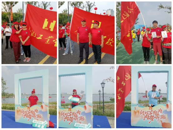 参与健步走活动的工业学校教职工,在沿着少荃湖畔健步走的同时,沿途欣赏少荃湖美景。一边行走,一边踏秋赏菊,还可以在途中一览国庆期间的少荃湖高校龙舟竞渡的青春风采。