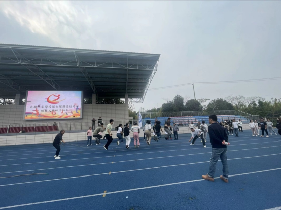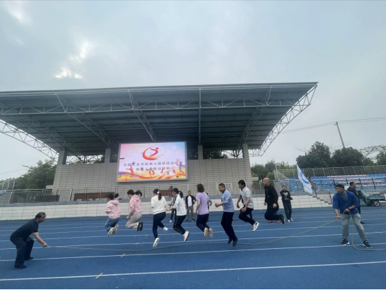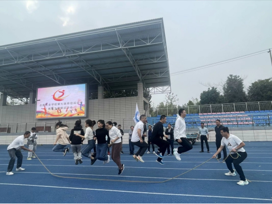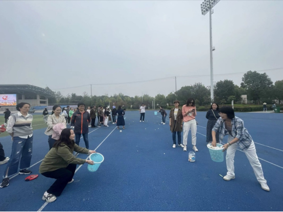 运动会现场气氛欢快,教职工们热情高涨,共享趣味运动带来的快乐与激情。