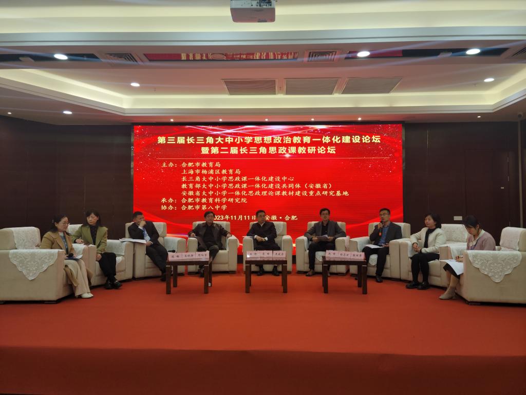 11月11日上午由教研室李风华主任带领思政教师队伍,来到了合肥第八中学百川礼堂,共同聆听和学习第三届长三角大中小思想政治教育一体化建设论坛暨第二届长三角思政课教研论坛。此次论坛聚集了长三角省市的大中小思想政治教育专家,为来自全省各个市县区的思政课教师带来了丰盛的学术盛宴。