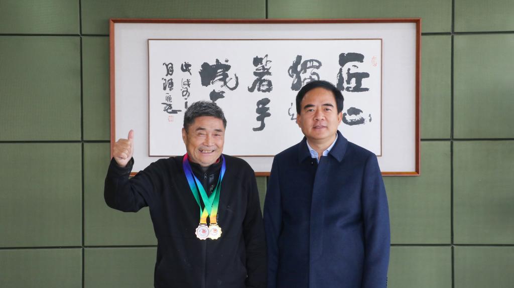 杨福生老师积极进取、乐观向上的无畏精神,一直激励着他不断挑战自我,展现出我校退休教工的风采,是体育运动爱好者、广大青年的榜样和典范。