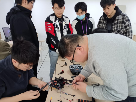 本次集训的主要内容是无人机的组装和调参。各代表队组装各个部件,对关键部件和连接处进行仔细检查,确保组装正确、紧固可靠;组装完成后,进行电气连接和调试,检查各项功能是否正常;通过检修台对飞行控制系统、功率系统、通讯系统等各个方面进行检查和维修。