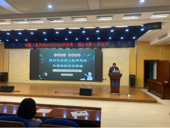 为进一步加强班主任队伍建设,提升班主任班级管理意识和育人水平,推进我校德育工作更精细化,助力学校高质量发展,同时共享管理的好方法、好经验。2024年4月10日下午我校在图书楼四楼会议室召开了2023-2024学年第二学期全体班主任会议。全体班主任、学生管理人员、各学部学管副主任、相关部门负责人参加会议,校党委委员、副校长张宗权出席并主持会议。