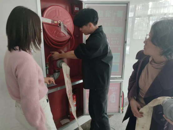 会议结束后,学校消防维保单位对参会人员进行了消防培训,技术人员详细讲解了火灾发生初期的扑救办法、消防水带的使用方法、灭火器的正确使用等消防知识,然后手把手进行操作。培训过程中,大家认真倾听,了解了消防水带的使用方法:如何安装、整理、使用;干粉灭火器“一提、二拔、三握、四喷”的正确使用方法。参会人员现场观摩学习后,进行现场操作,亲自体验消防水带的使用方法与技巧。
