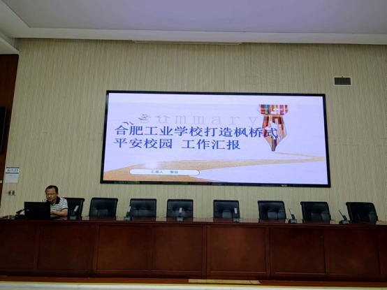 黎扬就我校枫桥式平安校园创建工作进行大会经验交流,从存在的困难、采取的措施、取得的成效和今后工作打算四个方面进行了专题汇报。