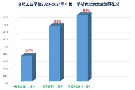 五月初以来,由总务处牵头,校医兼食品安全员徐义翠主要组织实施,前后两周时间动员全校学生利用中午晚上自习时间段,组织22级23级普专、高职学生3834名学生参与食堂线上满意度调查,实际参加测评人数为3792人,参与率达到99%;着重从食品质量份量、价格、卫生状况、服务态度四个方面对学校食堂共50多个窗口、两个超市进行了线上测评,此次满意度测评数据客观实在,与学校日常管理检查反馈情况相符,为后期加强食堂管理改进措施提供了数据参考。