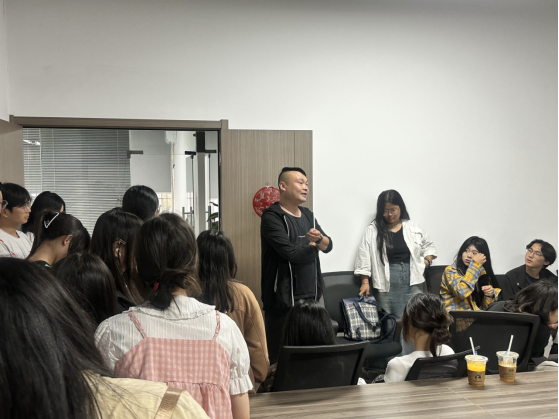 公司经理为同学们进行面对面交流,介绍了动漫游戏制作项目的工作流程,行业的发展方向,用人需求等,为同学答疑解惑。