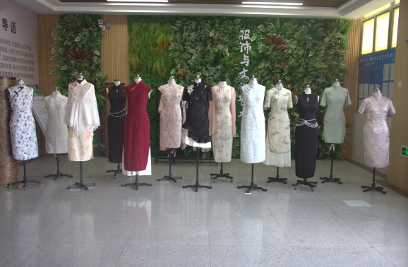学生利用课余时间,在老师的指导下精心布展,一件件精美绝伦的旗袍映入眼帘,仿佛在诉说着每一位设计者的独特故事与创意灵感。这些旗袍作品,或华丽绚烂,或清新淡雅,或复古优雅,或时尚前卫。每一处针线、每一片布料、每一个细节,都凝聚着设计者的心血与才华。从传统的样式到创新的设计,从经典的色彩搭配到大胆的突破尝试,每一件作品都展现出了学生对于旗袍这一传统服饰的深刻理解与无限热爱。