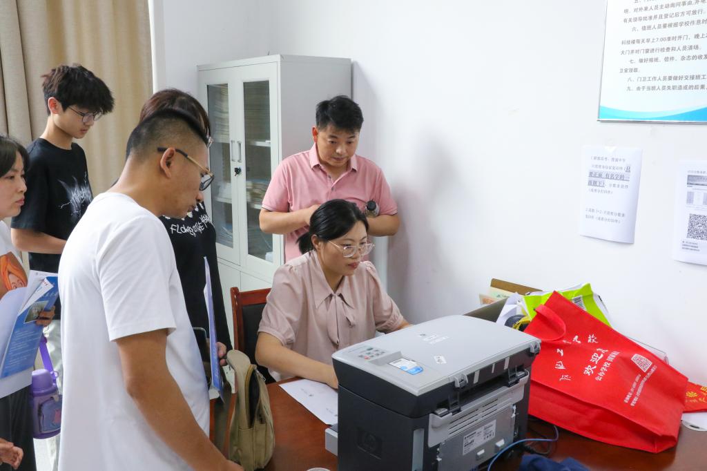 此外,为更好地服务家长和学生,学校还提供了免费打印、复印服务,最大程度减少家长来回跑腿的麻烦。同时在报名大厅、楼宇拐角设置指示牌,安排专人引导,提前开放空调,给每一位前来学校的学生、家长营造整洁、舒适、有序的报名环境。