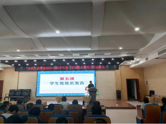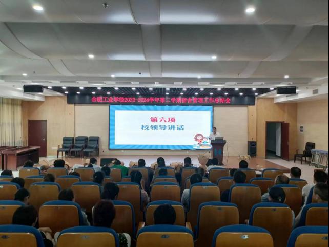 为回顾和总结一学期以来宿舍管理工作,进一步明确宿舍管理工作职责,提升宿舍管理服务质量,共同努力创造更加安全、舒适、和谐的育人环境。7月4日上午,合肥工业学校召开2023-2024学年第二学期期末宿舍管理工作总结会。学校党委委员副校长张宗权,学生处处长杨晓宁以及全体宿舍管理员参加会议。会议由学生处余娜老师主持。