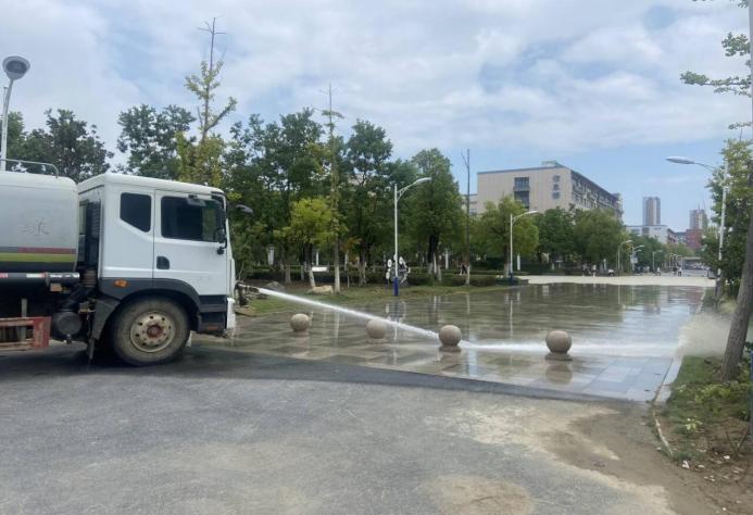 面对高温酷暑的持续考验,学校提前规划,组织物业维保单位及时调度洒水车在校园内洒水降温,并对重点部位配电机房、线路、用电设备等设施进行排查,在保证师生用电前提下,重点排查因高温用电量急增所产生的用电隐患,坚守校园安全底线。高温天气中,后勤人员们顶着烈日,穿梭于校园的每一个角落,对设备进行逐一排查,确保每一台机器都能在关键时刻高效运转,为师生驱散酷暑,带来清凉。