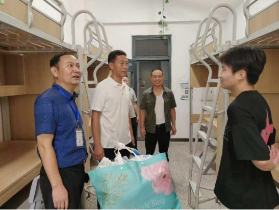 学生宿舍楼下,有专门的后勤工作人员为学生提供住宿帮助,保证学生顺利入住宿舍。学生公寓明亮整洁、焕然一新,工作人员们热情地解答同学们关于宿舍生活的问题,消除了同学们在陌生环境中的紧张情绪。