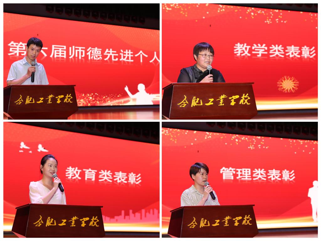 强国必先强教,强教必先强师。整个表彰大会共分为五个篇章,系统总结并表彰了上一学年学校在师德师风建设、教学教研、学生管理、行政管理等工作中涌现出的优秀教师代表,他们是全体教职工的楷模和榜样,是合肥工业学校的骄傲,他们用实际行动践行着职业教育教师的初心和使命,这份荣誉,是认可和表彰,更是鼓励和期许!