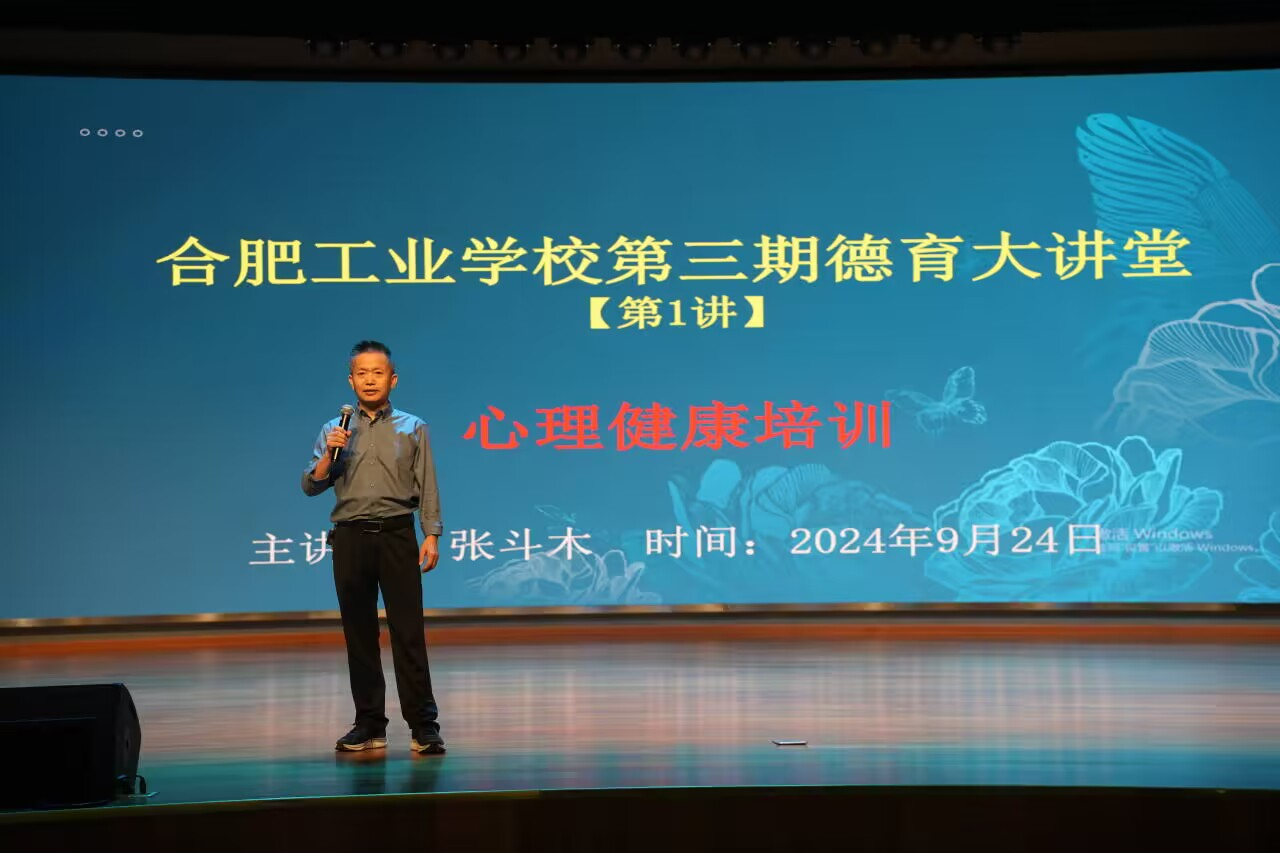 为更好了解同学们的心理健康状况,提高心理健康教育工作的针对性和实效性。2024年9月24日,合肥工业学校在图书楼三楼报告厅开展第三期德育大讲堂(第1讲)心理健康讲座暨新一届心理健康协会成立大会。讲座以“校园心理危机的征兆与识别”为题,建工学部张斗木老师主讲,学生处、学生心理健康协会、各班级心理委员200余人参加,学生处李晨雨老师主持。